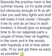 In the end after many problems with the whole bands availability, as well as my production group. We set a date for me to film and for the whole band to attend. We decided to film in their small practise room, which ideally would be decorated with a nice backdrop and fairy lights, also filming in a nearby wood. All that was left to risk was the weather...
